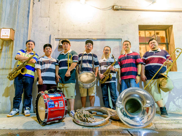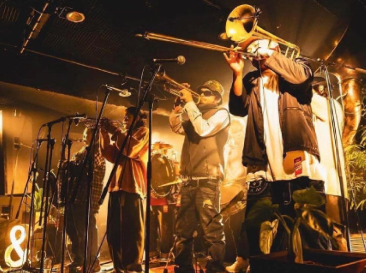 Brass BandJAZZ発祥の街“ニューオーリンズ”の音楽・文化を日本に広めるべく、関西出身のミュージシャンによって結成されたブラスバンド。 -